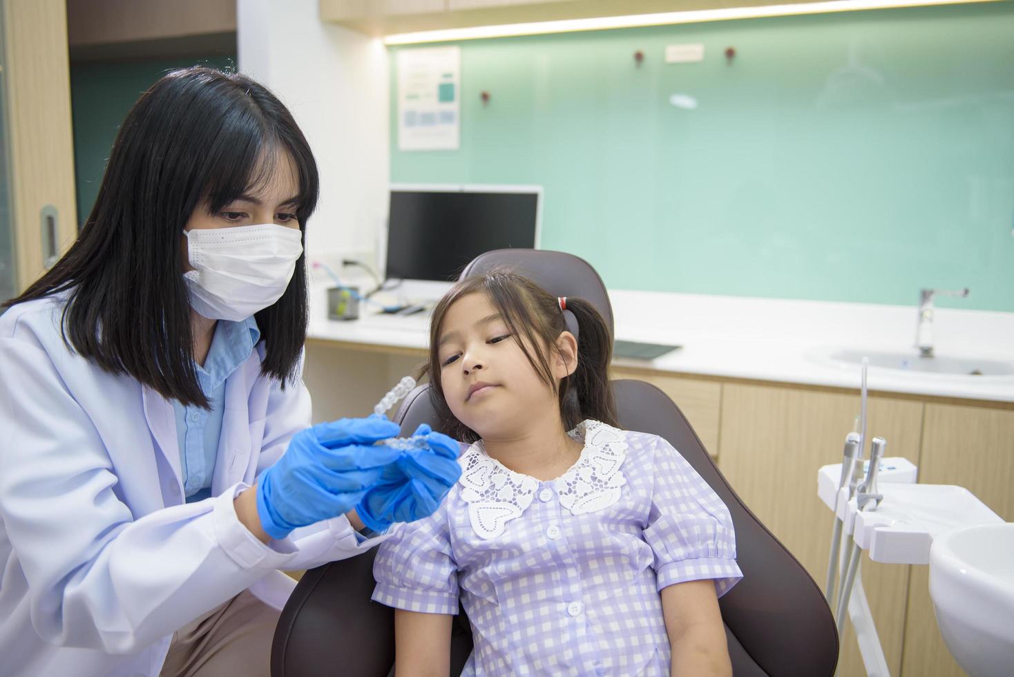 Female Dentist Showing Invisalign To A Little Girl In Dental Clinic Teeth Check Up And Healthy Teeth Concept 6240086 Stock Photo At Vecteezy